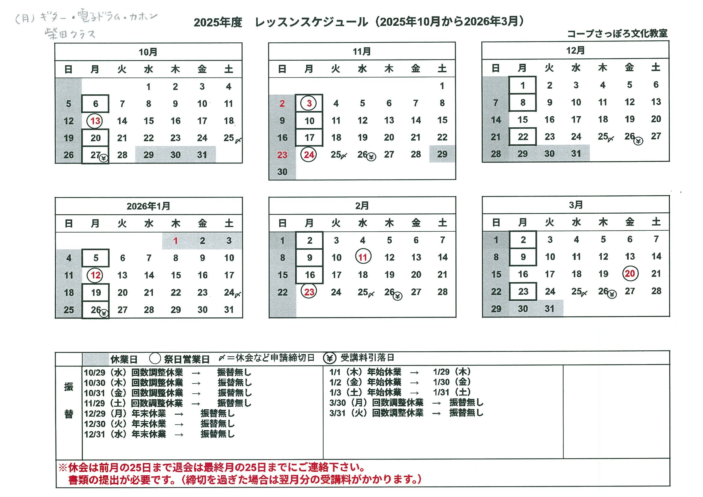 | 備考 | ※カホンプライベートレッスンもあります。 |