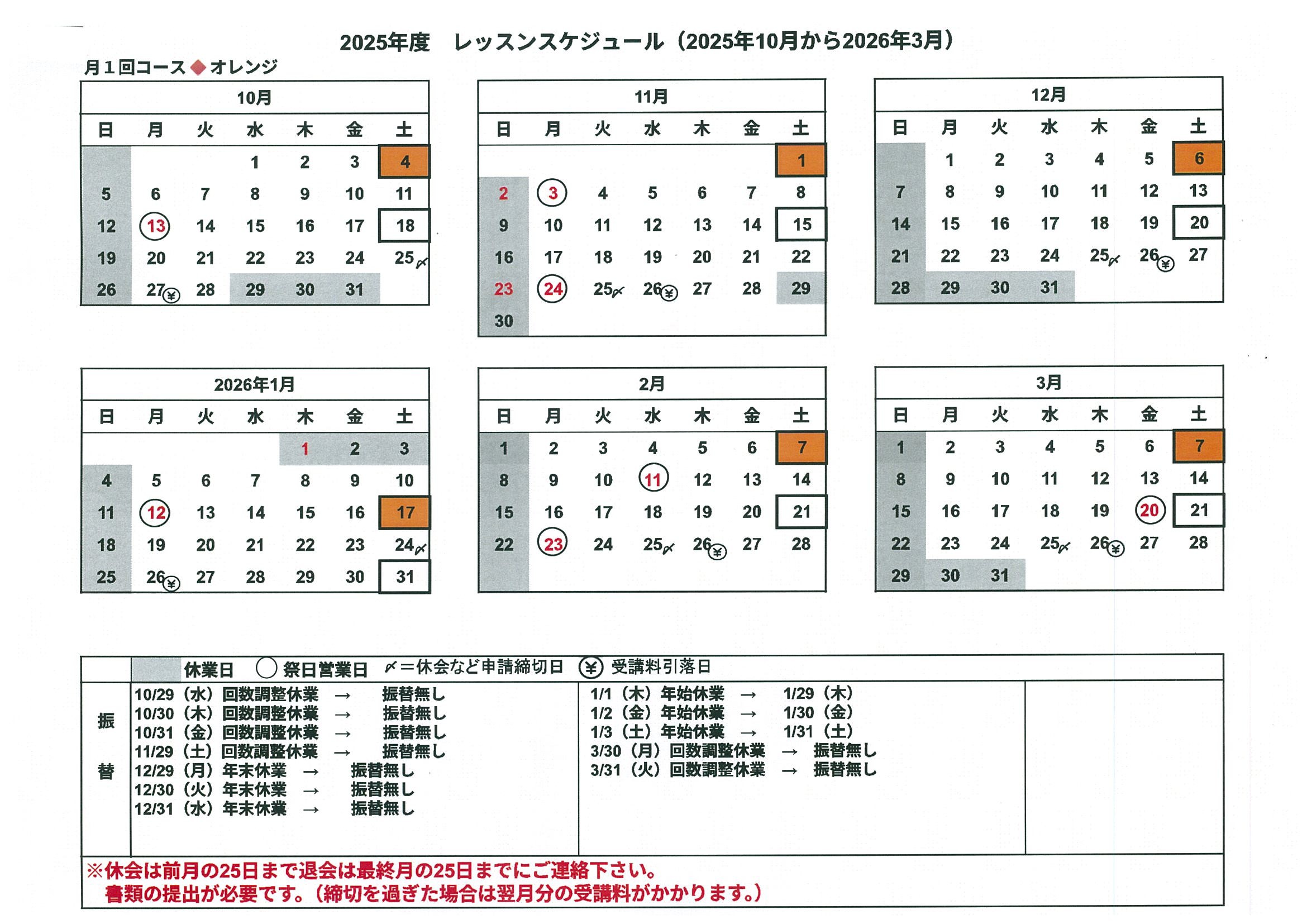 | 備考 | 月1回コース:第1土曜日 1,375円 月2回コース:第1・3土曜日 2,706円 |