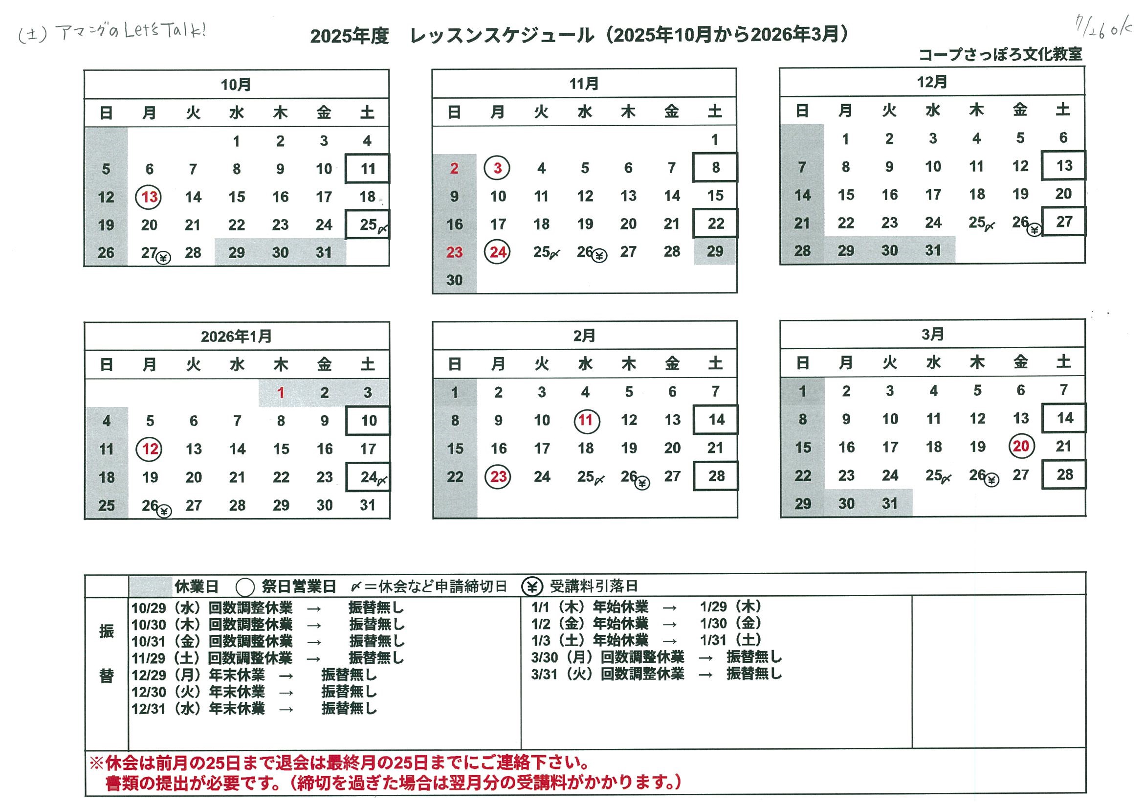講座曜日 | 第2.4土曜日 |