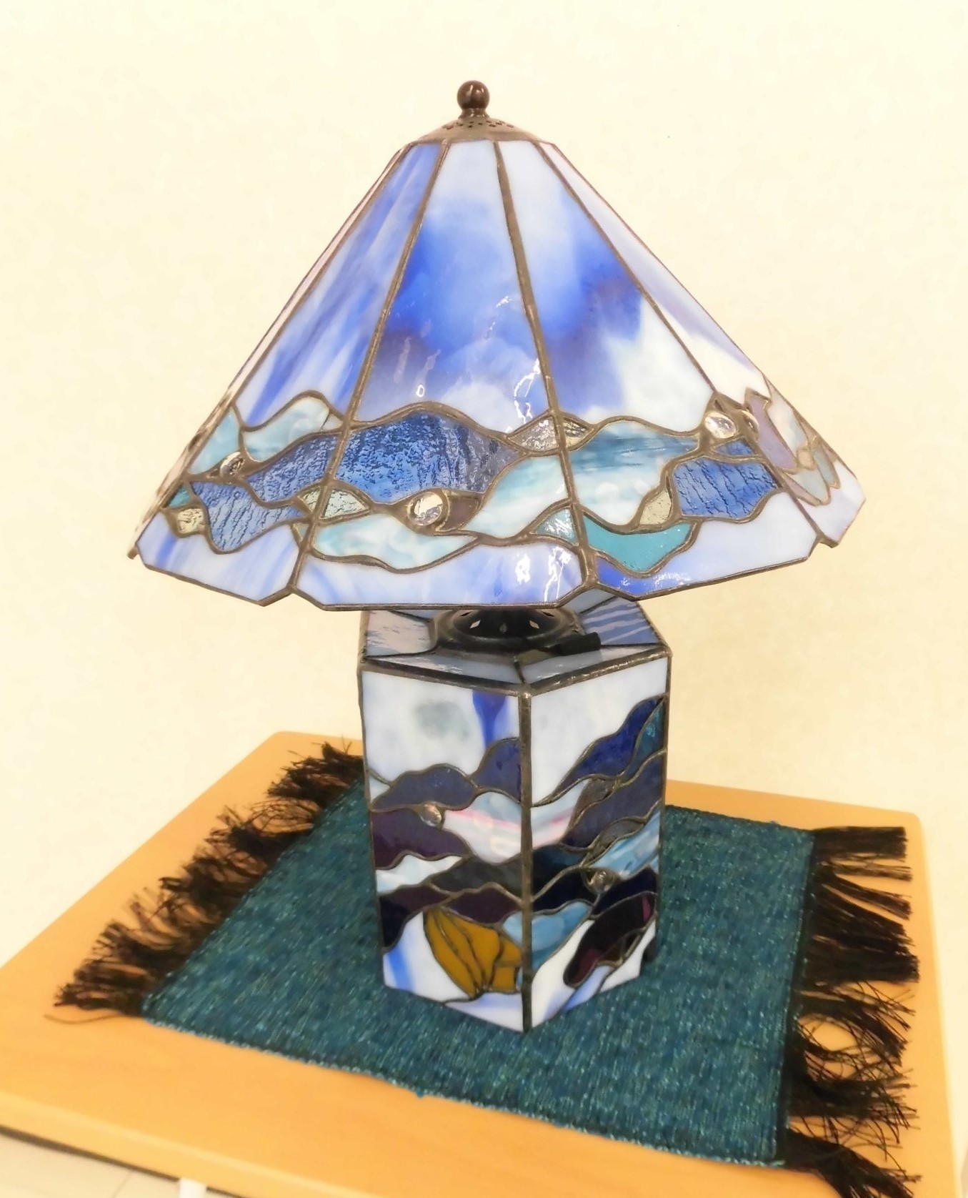 基礎技法(ガラスカット、ハンダ、仕上げ)を学ぶために所定のパネル課題を完成させた後はパネル、立体、ランプなど自由に制作することが出来ます。