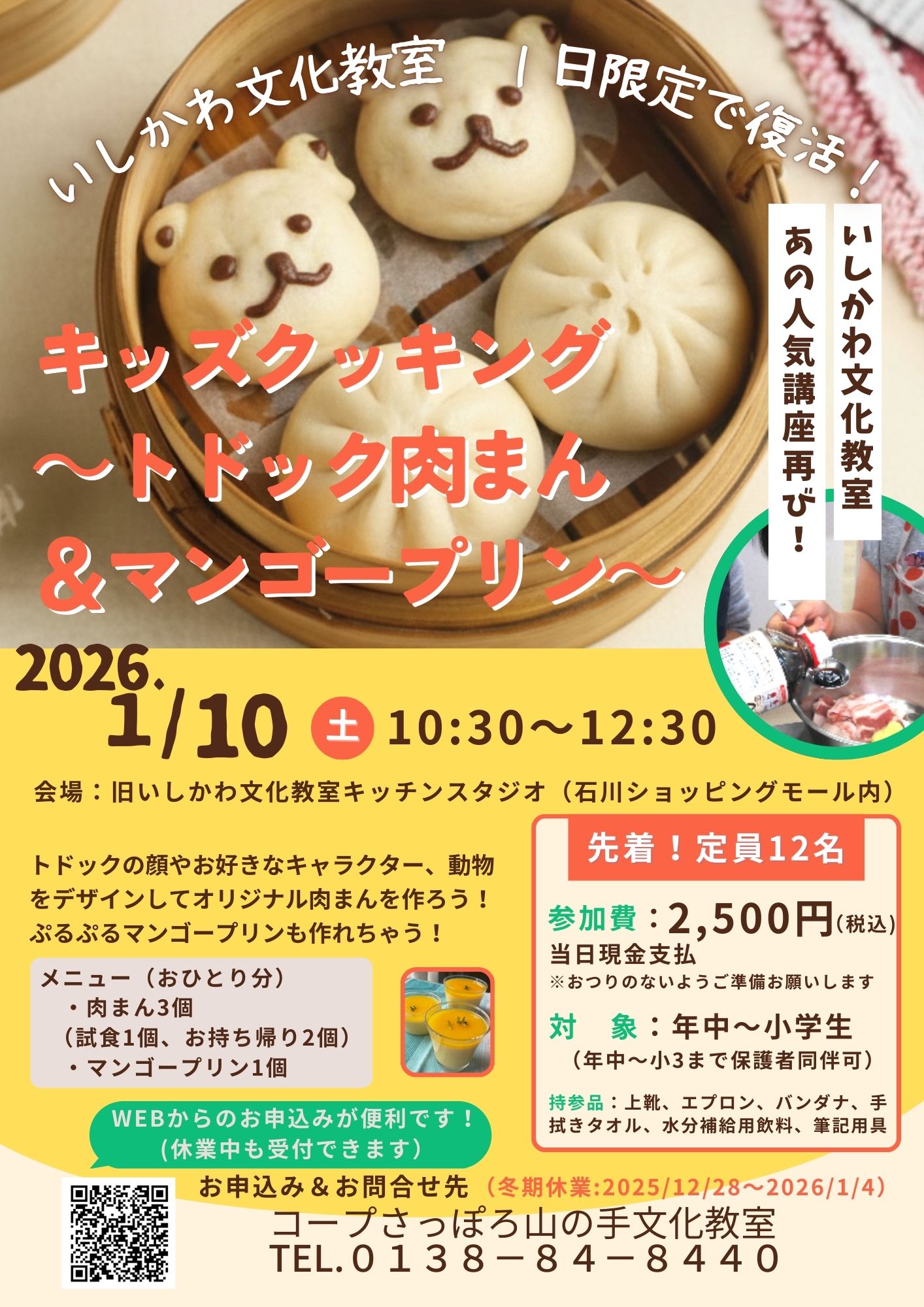 【いしかわキッチン1日限定復活】キッズクッキング トドック肉まん&マンゴープリン
