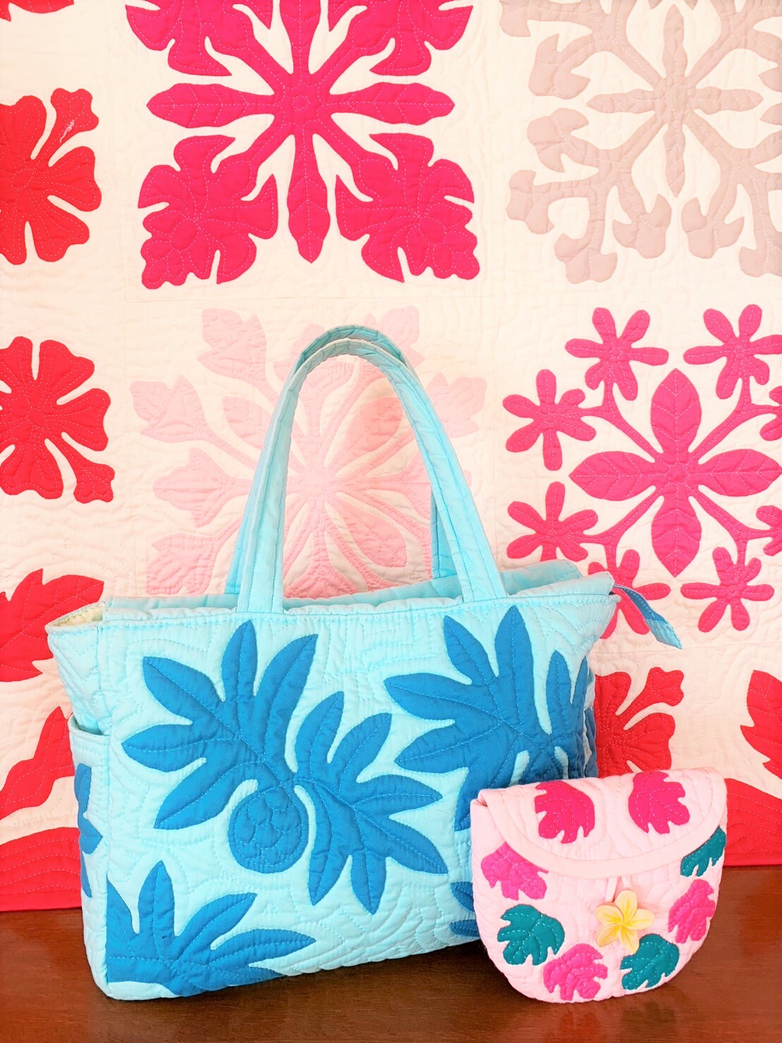 ハワイアンキルトとは、ハワイの伝統的なキルトで、植物や海の生き物をモーチフに図案が考えられています。