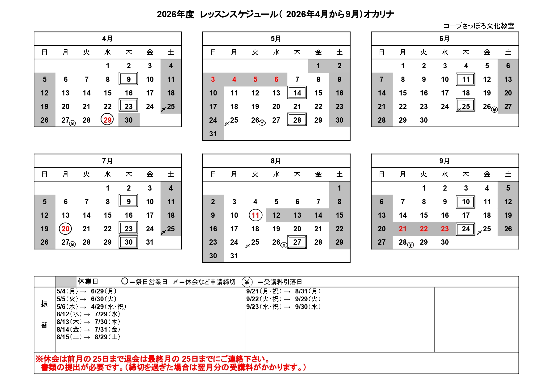 | 持参品等 | オカリナ(アルトC管をご持参ください。※体験時も必要です。) |