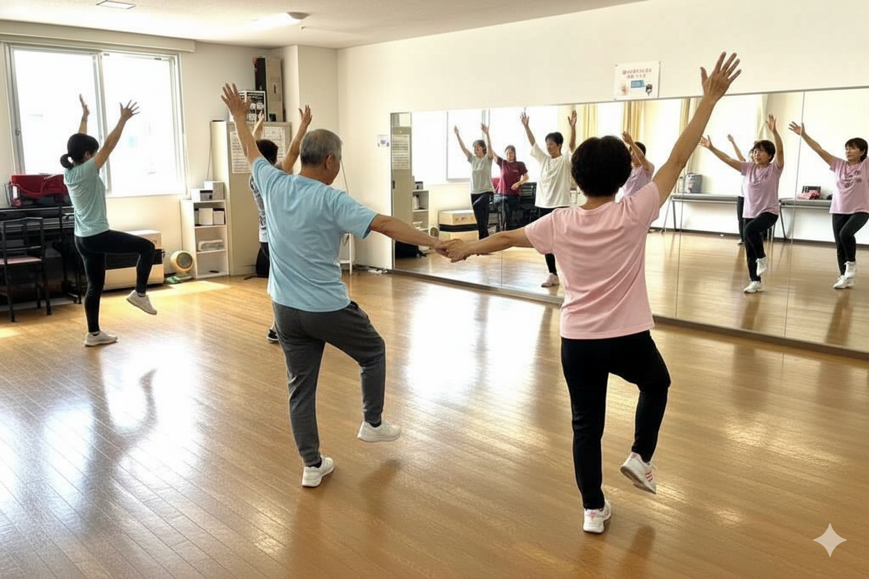 シニア向け(50歳以上の大人) 曲に合わせて踊り、楽しみませんか?踊りながら認知機能向上、ストレッチで体…
