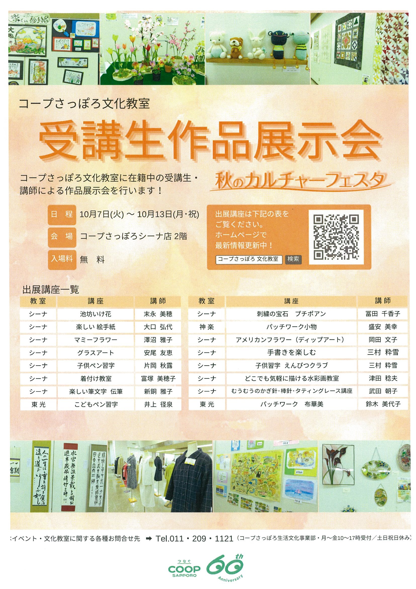 秋のカルチャーフェスタ 作品展示のお知らせです。