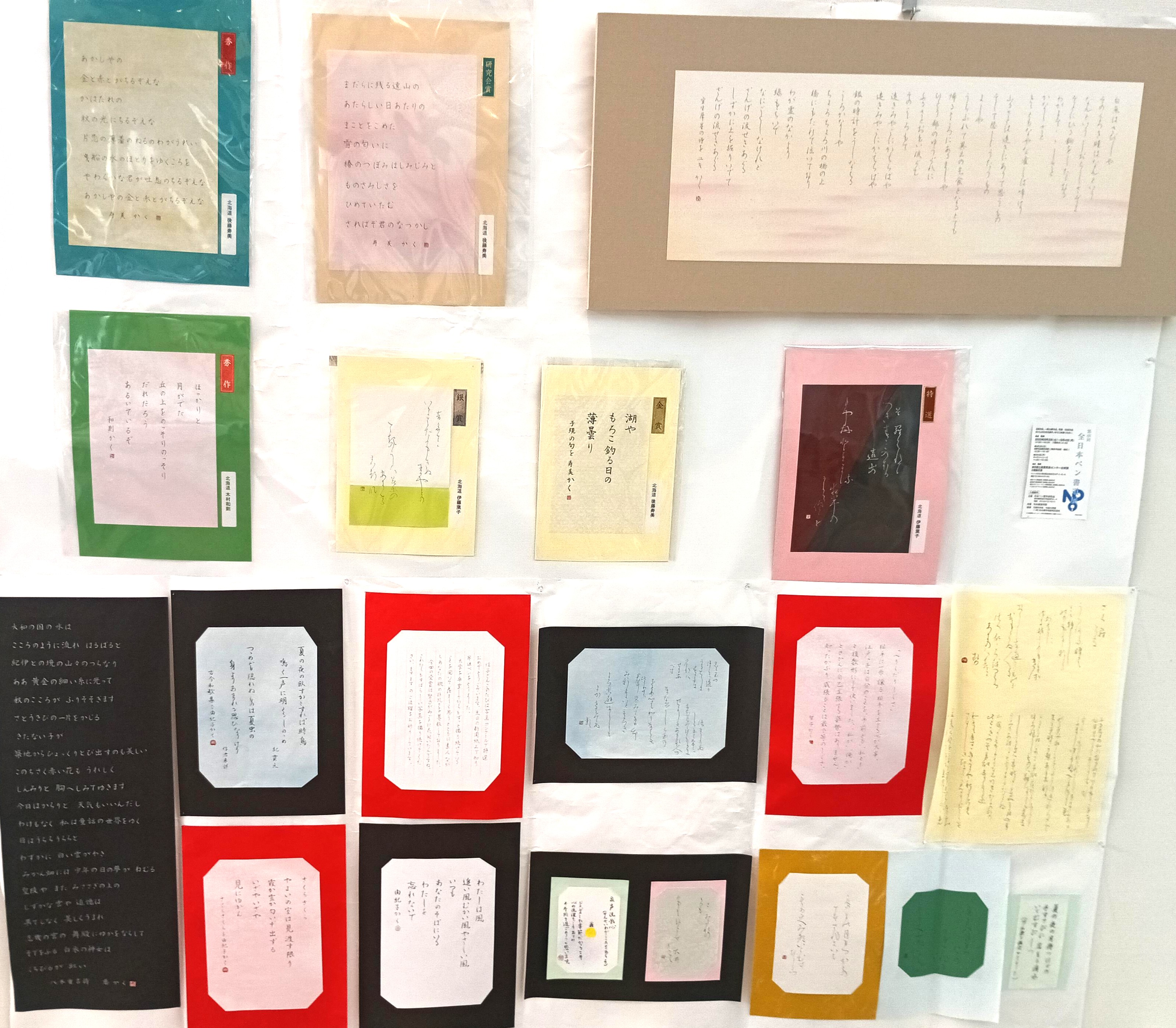 写真は「日ペンで学ぶ美しい文字講座」の1作品です。こちらも階段踊り場に飾ってありますのでぜひご覧ください。
